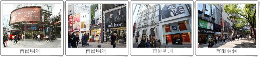 ●【明洞商圈】和逛街畫上等號的明洞,充斥著美利來、樂天百貨公司、AVATAR、HIHARRIET等高樓層的購物中心,還有許多知名度不高卻典雅的商店。明洞擁有吸引人群的獨特魅力,不管是要買飾品、運動鞋、皮鞋、靴子,或是中高價的商品,在明洞都可以找得到。雖然大型有名的賣場就在主要大馬路邊,但是只要再走進去一些,就會發現也有不少打折拍賣的店家喔!明洞最大的優點就是能夠享受在戶外逛街購物的休閒自在,而且各種款式和尺寸的商品應有盡有,使它成為逛街的首選,必去的景點,並讓購物客都能留下美好的記憶。