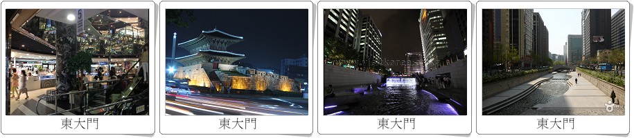 ●【東大門綜合市場】逛街購物~此地聚集有百貨、食品、書籍、家電用品、…等生活必需品,為一整體性的批發市場,商品眾多豐富且價格優惠。在廣場的大帳棚內的「帳棚攤子」,有許多韓國的風味小吃,令人垂涎三尺,您可在此享用美食及享受購物樂趣。