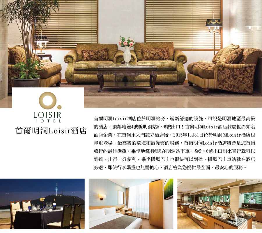 住宿:保證入住明洞區特二級飯店:雅樂富特A LOFT HOTEL(2017.2月開幕) 或樂天城市LOTTE CITY HOTELS MYEONGDONG 或 LOISIOR或皇家 ROYAL HOTELT或GOLDEN TRUIP M HOTEL或同級
